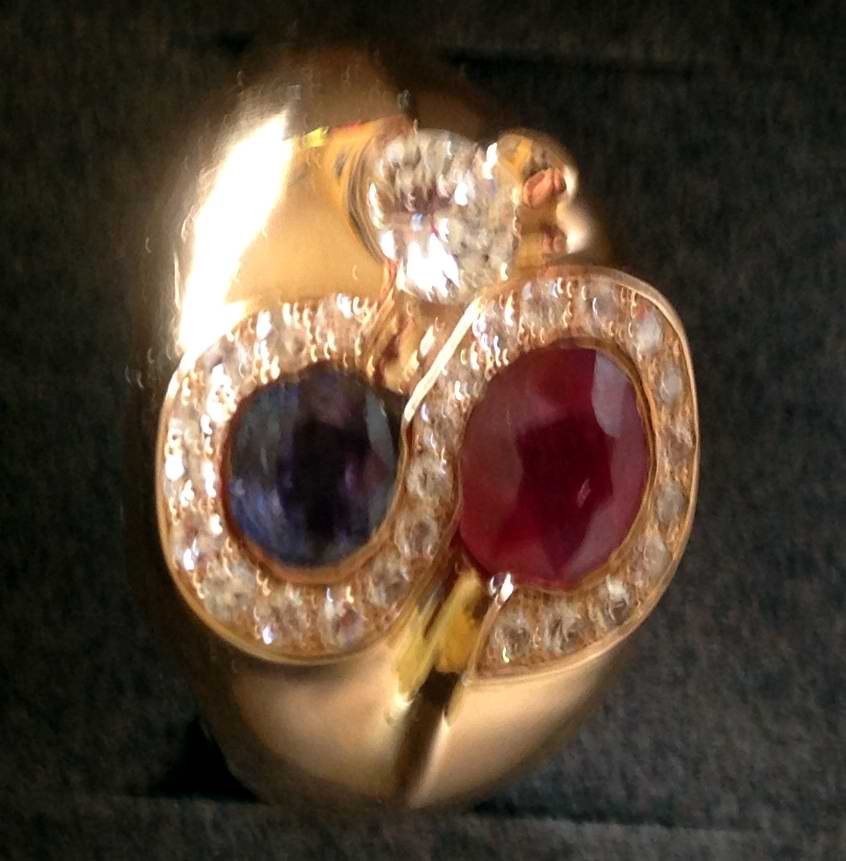 Den andra guldringen har en Rubin och en safir.