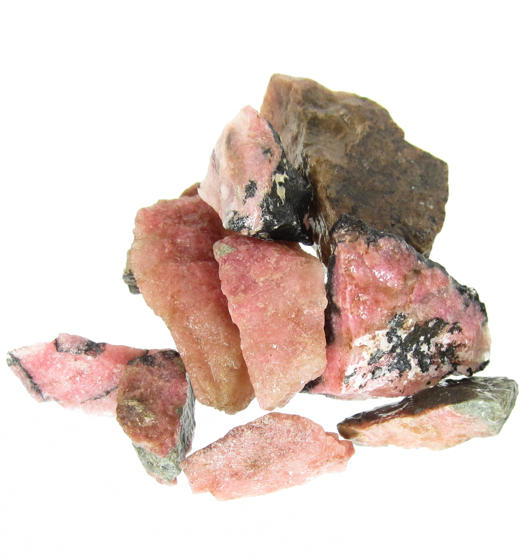 Bra Pris Parti 10 st Vacker Rosa med Svart Mönstrad Oslipad Rå Rodonit 87 gram Naturliga Brottstycken Bitar Fin Färg & Kvalitet från Brasilien Köp Nu!